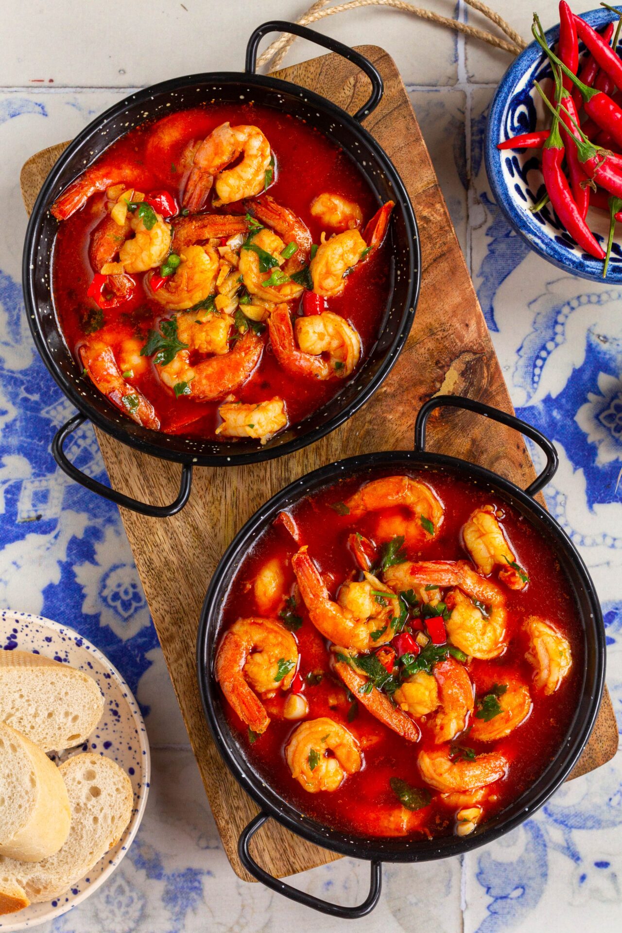 - Gambas pil pil – krewetki smażone w oliwie z czosnkiem i ostrą papryką.